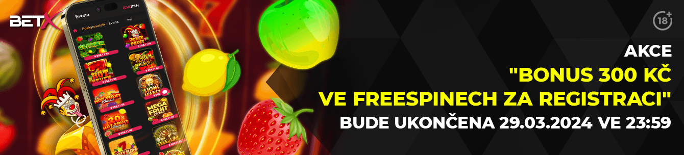 Bonus 300 Kč ve Freespinech za registraci (bude ukončeno 29.03.2024 ve 23:59:59)